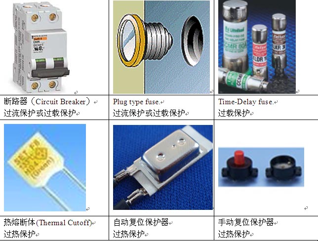 (1) 使用馬達裝入式熱保護器,符合CSA標(biāo)準(zhǔn)C22.2 No.77 Motor with Inherent Overheating Protection. 這些馬達過熱保護器如上表所列,使用時需要注意,保護器不能只響應(yīng)馬達的電流,還需要有適當(dāng)?shù)念~定工作電壓,電流值與溫度預(yù)定保護值,而且熱保護器需要適用于馬達。標(biāo)準(zhǔn)要求的測試有Running Heating Temperature test, Locked-Rotor Temperature test and Locked-Rotor Endurance test. 如果馬達符合這本標(biāo)準(zhǔn),就可以標(biāo)上 “THERMALLY PROTECTED” (熱保護馬達)。也就是說,當(dāng)馬達符合整機電器的標(biāo)準(zhǔn)CSA68與馬達標(biāo)準(zhǔn)CSA77,馬達在正常工作額定負載(Rating),過載(Running Heating)以及堵轉(zhuǎn)(Locked-Rotor)的應(yīng)用條件下都符合標(biāo)準(zhǔn)要求,馬達得到了過熱保護。