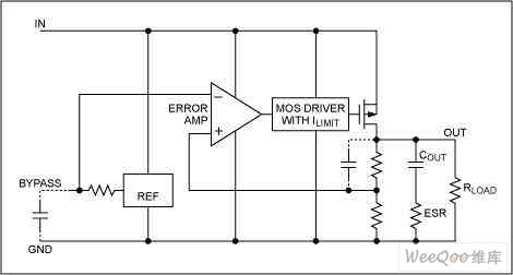產(chǎn)生壓差的主要原因是,在調(diào)整元件中有一個P溝道的MOS管。當(dāng)LDO工作時MOS管道通等效為一個電阻,RDS(ON),
