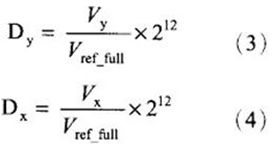 ADS7846內部可以通過寄存器的設置A/D轉換器的分辨率設為8位或12位,在本系統(tǒng)中A/D轉換器的分辨率取12位。則P點的二進制輸出代碼為: