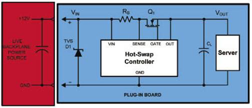 為此,熱插拔控制器曾被斷言是為分布式電源系統提供非常可行的系統保護和電氣管理的首選方法,特別是可以滿足服務器市場的嚴格要求。這類應用的熱插拔控制器的特點一般包括:帶電板插入和拔出的安全控制(浪涌電流控制)、故障監測診斷和保護、精確的電氣(電壓、電流、功率)和環境(溫度)參數測量,以提供模擬或數字域的實時系統遙測。特別是,如果一個服務器機架上的一個線卡發生故障,該故障應與該特定線卡相隔離,這樣既不影響系統背板,也不影響由帶電背板供電的其他線卡。通常情況下,熱插拔控制器連接到以下器件:
