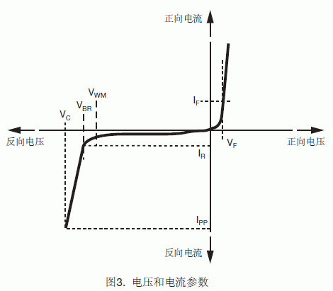 斷態(tài)電壓指的是TVS在未擊穿情況下所能承受的最高電壓,它是在正常情況下不工作電路中保護器件的重要參數(shù)。在汽車中,一些汽車電子產(chǎn)品規(guī)范是根據(jù)“跳線跨接起動保護”的情況制定的。這種情況要求為12V類型電子設備提供10分鐘24VDC,或為24V類型電子設備提供10分鐘36VDC,而不損壞電路或者引起電路故障。因此,斷態(tài)電壓是汽車電子產(chǎn)品中TVS的一項關(guān)鍵參數(shù)。