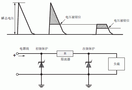 在特定的峰值脈沖電流定額下,TVS上會出現(xiàn)鉗位電壓。TVS的擊穿電壓在非常小的電流下測得(例如1mA或10mA),它不同于應用條件下的實際雪崩電壓。因此,半導體制造商所標注的是在大電流下的典型或最大擊穿電壓。