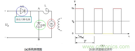 圖3中(a)圖為采用晶閘管做開關的直流斬波器—電動機調速系統原理圖。