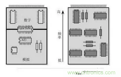 上面的兩種情況,說明數模混合單板中,模擬電路極易受到干擾,會影響信噪比等指標。所以在數模混合單板 PCB 設計過程中,要對布局布線提出很高的要求。