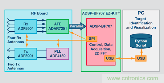 演示雷達平臺提供硬件和軟件,支持快速評估和開發(fā)24 GHz雷達,且無需RF微波和信號鏈系統(tǒng)專業(yè)知識,因此可在產品開發(fā)階段大大降低開發(fā)時間,并減少系統(tǒng)專業(yè)知識需求。平臺能提供包括DSP處理在內的高性能RF和完整模擬信號鏈,即RF到比特解決方案,支持靈活處理原始采集數(shù)據(jù),可在非常短的時間內對先進的硬件進行雷達實驗。使用軟件圖形用戶界面(GUI)提供全面的24 GHz雷達IC軟件支持,在DSP雷達支持功能庫中,通過一些額外功能可寫入原始數(shù)據(jù),并使用Matlab工具在PC上進行后處理。