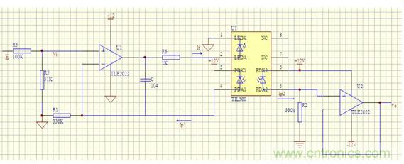 由于按照線性光耦的技術說明,發射端和兩個接受端都使用時能在一定范圍因此,本電路將線性光耦的D0,D1,D2端都配置了相關電路。
