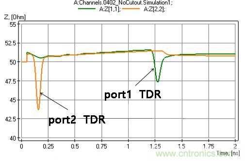 圖5圖6對(duì)比,發(fā)現(xiàn)未處理之前阻抗的跳躍很明顯,隔層處理后的阻抗改善很多,幾乎沒(méi)有任何階躍與不連續(xù)。