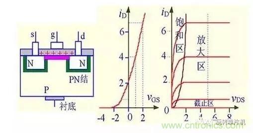 增強型:VGS=0時,漏源之間沒有導電溝道,在VDS作用下無iD;耗盡型:VGS=0時,漏源之間有導電溝道,在VDS作用下iD。