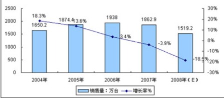 - 預(yù)計2008年銷售量將同比下降18.5%,銷售收入同比下降20.8%