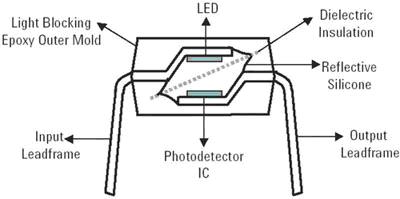 光學(xué)耦合器的工作基礎(chǔ)是LED發(fā)出的光通過透明的絕緣介質(zhì)到光電探測(cè)器,這種介質(zhì)提供2.5kV-6kV范圍的高壓絕緣。光耦合程度取決于光導(dǎo)材料。絕緣將通過光導(dǎo)材料本身或通過額外的光傳導(dǎo)介電材料實(shí)現(xiàn)。在任何情況下,LED的排列、光導(dǎo)材料、介電材料和IC都會(huì)直接影響光耦合和高壓絕緣的性能。
