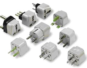 可以預(yù)見,在相當(dāng)長的時間內(nèi),交流電插頭/座還會維持現(xiàn)狀。在不能統(tǒng)一標準而又要解決互換使用的情況下,轉(zhuǎn)接適配器(圖2.3)成為目前行之有效的辦法。實現(xiàn)將某種插座轉(zhuǎn)換成能與多種插頭匹配的樣式(圖2.4)。適配器自身插頭改進后,適用范圍可更廣。