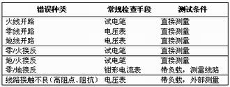 無論哪種插座,正確接線只有1種,其它組合都是錯誤的。為確保設(shè)備和人身安全,插座在投入使用之前,必須依照規(guī)范進行檢查。準確辨別各種接線錯誤(3芯插座的接線錯誤歸納于表4.1)需要必要的工具和方法。