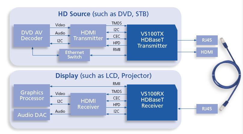 HDbaseT技術與現(xiàn)有HDMI傳輸方案配合,設計十分簡單,為STB和TV廠商提供更多賣點