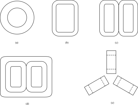 (a)環(huán)形(b)單框形(c)雙框形(d)合成三框形(e)120°布置三框形