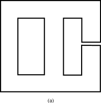 常見的多功能鐵心結(jié)構(gòu)主要是平面布置的形式(圖9)。圖9(a)是一個(gè)變壓器和一個(gè)電抗器的鐵心結(jié)構(gòu)。圖9(b)是一個(gè)變壓器和兩個(gè)電抗器的鐵心結(jié)構(gòu)。圖10巧妙地采用兩種軟磁材料組成多功能鐵心結(jié)構(gòu)。圖10(a)外框鐵心采用高導(dǎo)磁合金材料,形成變壓器,中間采用低導(dǎo)磁材料形成電抗器。除了這種框形加中間柱結(jié)構(gòu)而外,還有圖10(b)的橋式多功能鐵心結(jié)構(gòu),四個(gè)橋臂用高導(dǎo)磁材料,橋?qū)蔷€用低導(dǎo)磁材料或者開一個(gè)氣隙。