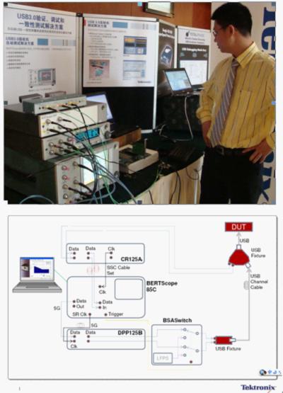 如USB2.0應用一樣,泰克為USB3.0的發射機測試提供了超過規范要求的完整解決方案(手動和自動可選)。對于復雜得多的接收機測試,泰克則展示了最新的BERTScope解決方案,可幫助開發者加快USB3.0的一致性測試速度。