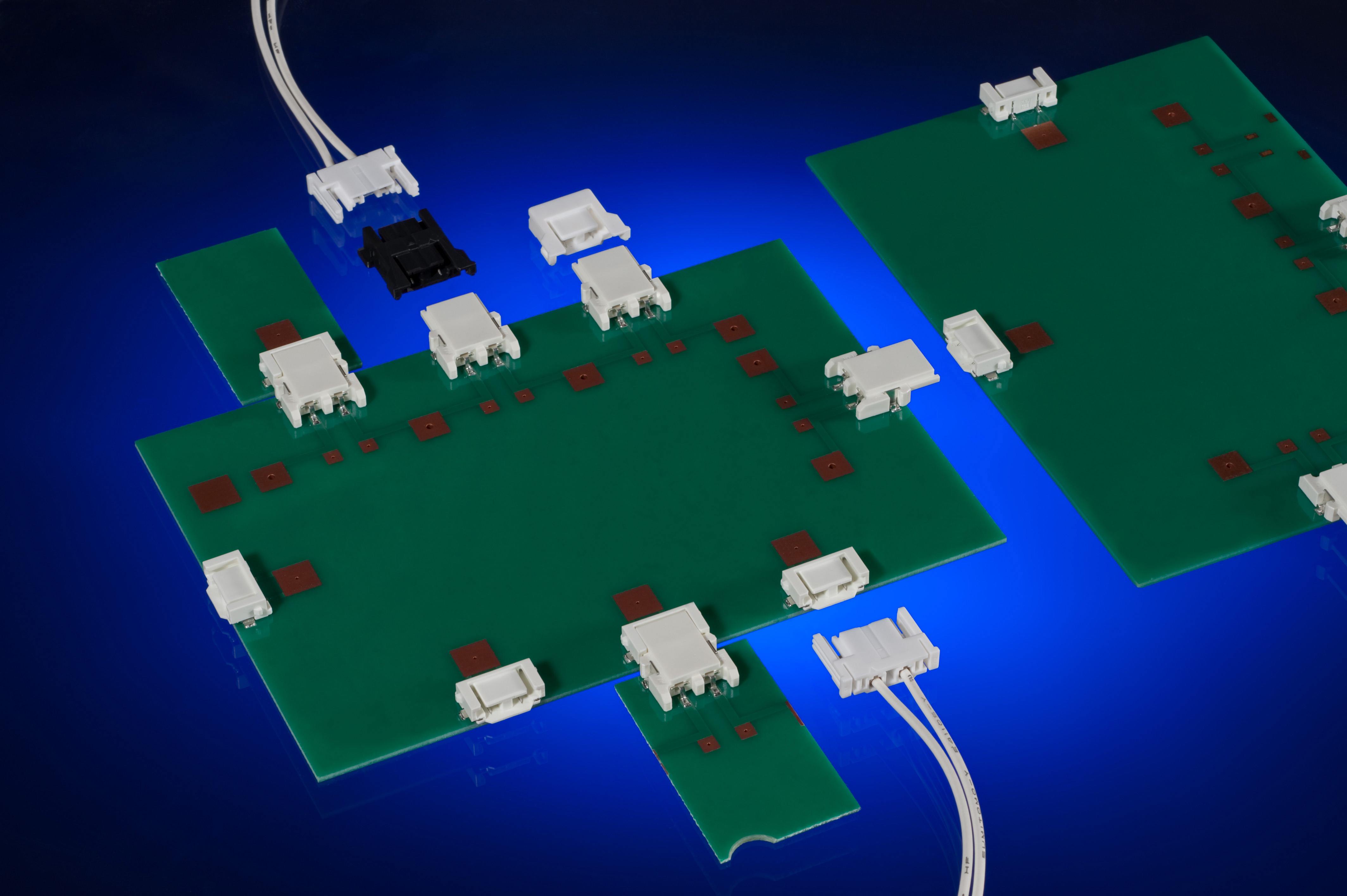 Flexi-Mate連接器系統包括共面板至板連接器,用于扣合包含LED燈的小型面板,并提供可用于連接LED板和主電源板的線至板連接選件。而端接連接器可用作完成開環信號的短路裝置。Flexi-Mate連接器系統目前可以用于普通兩路設計,主要特性包括實現安全電氣接觸的雙觸點端子設計,以及節省空間的穩固的線至板連接器正面鎖(positive side lock)。PCB版本上的插配導引可有助于在插拔時順利插配并保護接線端子。Flexi-Mate連接器系統現提供采用低鹵素和非低鹵素材料版本,以配合不同的環保和市場要求。