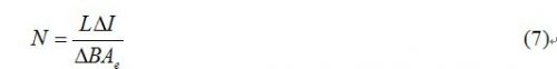 由圖得到磁導率為60,H=21Oe,磁導率下降到90%,為了在給定峰值電流時保持給定電感量,需增加匝數為N匝,選取111匝。