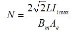 因為導通時間隨輸入電壓平方成反比,因此應當在最低電壓下選擇磁芯尺寸,只要在最低輸入電壓峰值時避免飽和。