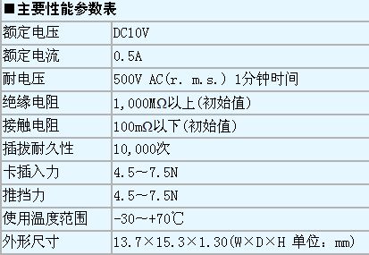 “CIM-J38N”連接器采用了小型、薄型設(shè)計(jì),標(biāo)準(zhǔn)安裝型的物理尺寸為高1.30mm、寬13.7mm、進(jìn)深15.3mm。連接器采用Push-in Push-out推擋方式,卡排出尺寸為3.8mm。同時(shí)還附帶防卡彈出止動(dòng)結(jié)構(gòu)、裝載卡檢測(cè)開(kāi)關(guān)(Normally open型)、RFID接頭,并增強(qiáng)了卡反向插入功能。另外還增強(qiáng)了EMI對(duì)策用接地線(Ground)功能。