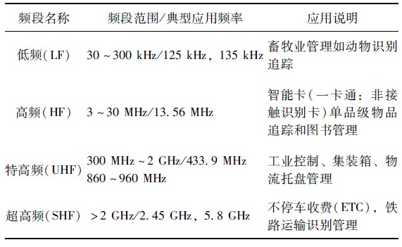 表1 RFID 標(biāo)簽的工作頻率及典型應(yīng)用。