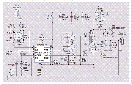 圖 2 使用耦合電感的 SEPIC(4A 時 16V)