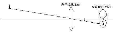 四象限光電探測器實際由四個光電探測器構(gòu)成,每個探測器一個象限,目標(biāo)光信號經(jīng)光學(xué)系統(tǒng)后在四象限光電探測器上成像,如圖1。一般將四象限光電探測器置于光學(xué)系統(tǒng)焦平面上或稍離開焦平面。當(dāng)目標(biāo)成像不在光軸上時,四個象限上探測器輸出的光電信號幅度不相同,比較四個光電信號的幅度大小就可以知道目標(biāo)成像在哪個象限上(也就知道了目標(biāo)的方位),若在四象限光電探測器前面加上光學(xué)調(diào)制盤,則還可以求出像點偏離四象限光電探測器中心的距離或θ角來。