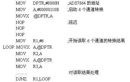 根據(jù)真值表,可以用圖4中的邏輯電路來實現(xiàn)這兩個使能信號。系統(tǒng)的最終目標(biāo)就是獲取數(shù)據(jù),然后計算得出結(jié)果。89C51控制ADS7864轉(zhuǎn)換和讀取轉(zhuǎn)換結(jié)果的代碼如下: