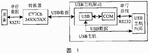 主機必須能夠通過設備驅動接收USB數據,并且使這些數據對處理這些請求的應用程序有效。在主機中必須有一個驅動負責處理USB傳輸、辨識設備、向USB設備收發數據;同時,還需要有一個設備驅動-虛擬化串行口,仿效真實的串口。這個驅動必須能夠像真實的串口接收和發送USB數據。