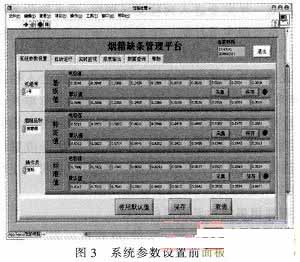 如圖2所示,上位機煙箱缺條管理平臺系統(tǒng)主要包括串口通訊、參數(shù)設置、系統(tǒng)報警、數(shù)據(jù)存儲、報表輸出、剔除信號輸出等6大模塊;利用LabVIEW建立與下位機進行串口通訊的子VI,對接收到的數(shù)據(jù)進行處理,判斷是否發(fā)生缺條。當發(fā)生缺條時,上位機除了產生剔除控制信號、報警之外,還將缺條信息存入數(shù)據(jù)庫中,方便操作人員日后查詢等。圖3為煙箱缺條管理平臺的參數(shù)設置前面板圖。