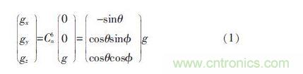 其中,Cbn為慣性坐標系到載體坐標系的變換矩陣;θ 為俯仰角;φ為橫滾角;g 為重力加速度; 可以通過測量重力加速度分量gx、gy、gz,計算出平衡車俯仰角θ1和橫滾角φ1估計值
