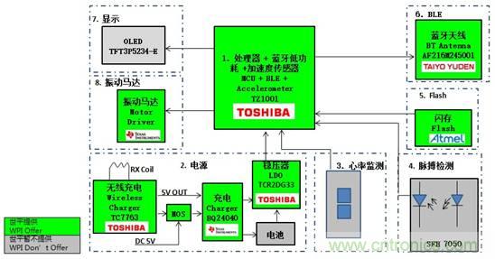 圖示9-大聯(lián)大世平基于Toshiba TZ1001 高集成度智能手表功能框圖