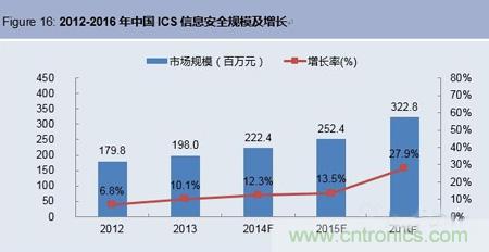 目前中國政府正在加速推進ICS等級保護標(biāo)準(zhǔn)的制訂,預(yù)計2016-2017年將有望在工控行業(yè)中全面實施,屆時將成為推動ICS信息安全市場發(fā)展的重要驅(qū)動因素, ICS信息安全市場將會呈現(xiàn)爆發(fā)式的增長。