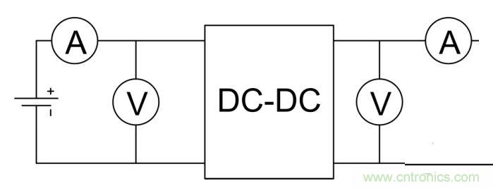 以上分析了不同的負載阻抗與功率特征阻抗下電表的損耗,哪到底選用哪種?需要根據測量對象選擇。以測試DC-DC轉換器效率為例,需要測量轉換器輸入功率和輸出功率。輸入功率即是轉換器吸收的功率,應盡量減少電表的損耗,所以需要把損耗小的電表內接,把損耗大的電表功率排除。輸出功率是轉換器提供的功率,電表損耗和負載功率都是由轉換器提供,要將電表損耗功率計入轉換器輸出功率,因此把損耗大的電表進行內接。