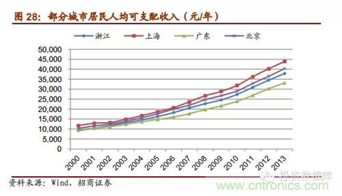 我國家用機器人發(fā)展最主要的驅動因素有勞動力價格的提高、城鎮(zhèn)居民人均可支配收入的提高等。勞動力價格的上升使得簡單勞動的設備替代率明顯上升,人們一方面想從簡單家務勞動中釋放出來而另一方面家政服務勞力的價格越來越高,因而家務機器需求有其剛性驅動。同時,隨著我國經(jīng)濟的高速發(fā)展,在過去的10年里城鎮(zhèn)居民的可支配收入大致翻了三倍,人們生活水平和消費水平不斷地提高,越來越多的家庭具有家用機器人的購買能力。另外,現(xiàn)在信息和科技傳播速度飛快,各種科技產(chǎn)品成本在競爭中下降迅猛。iRobot2013年在中國市場的家用清潔機器人銷售額增幅大于3倍,剛公布的14年上半年年報顯示受中國需求的強勁拉動iRobot在亞太地區(qū)清潔機器人銷售增幅高達18%。在中國這種一個高速發(fā)展的人口大國,可預計,未來我國家用智能機器人的市場規(guī)模巨大。