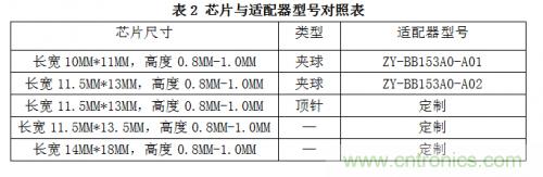 針對不同封裝的芯片,將有不同的適配器型號與之對應(yīng),如表2所示。
