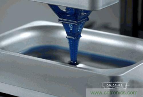 在從液體里“拉”出固體的3D打印技術當中,活化固化劑的方式從熱壓變成了光,所以這種技術被稱為立體光固化成型(SLA)。這里所用到的液體材料被稱為光敏樹脂,一般是環氧樹脂或不飽和聚酯等摻雜一些對特定波長敏感的光引發劑制成的。這類技術本身也并不是什么新生事物了,它的歷史可以追溯到1984年。