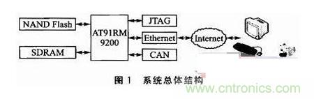 支持遠程自動更新的嵌入式Linux系統機構,它可以分為嵌入式終端和遠程管理系統兩部分。系統的總體結構如圖1所示,嵌入式終端采用基于ARM9架構的AT91RM9200微處理器,采用擴展的32MB SDRAM,由2片16位數據寬度的SDRAM芯片HY57V281620并連而成,采用64MB NANDFla sh存儲芯片K9F1208,運行嵌入式Linux系統。遠程管理系統選用PC機。嵌入式終端通過以太網連接到遠程管理系統,管理人員可以通過telne t即可對各個嵌入式終端進行監控、管理和遠程更新。
