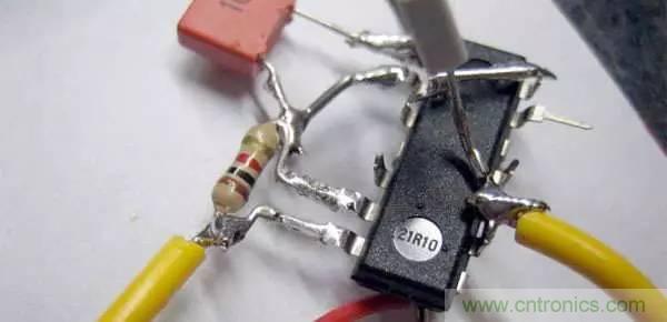 洞洞板的焊接需要大量的跨接、跳線等,不要急于剪斷元器件多余的引腳,有時候直接跨接到周圍待連接的元器件引腳上會事半功倍。另外,本著節約材料的目的,可以把剪斷的元器件引腳收集起來作為跳線用材料。