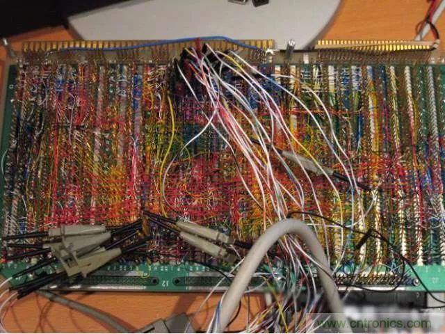 對于元器件在萬能板上的布局,大多數人習慣“順藤摸瓜”,就是以芯片等關鍵器件為中心,其他元器件見縫插針的方法。這種方法是邊焊接邊規劃,無序中體現著有序,效率較高。但由于初學者缺乏經驗,搭出來的板是這樣的……
