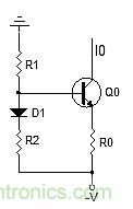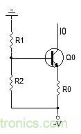 圖2:電路在R0兩端的電壓為V – VBE(Q0)。
