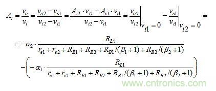 差分放大的條件是Aν1 = Aν2。當電路滿足如下等式時,它是對稱的: