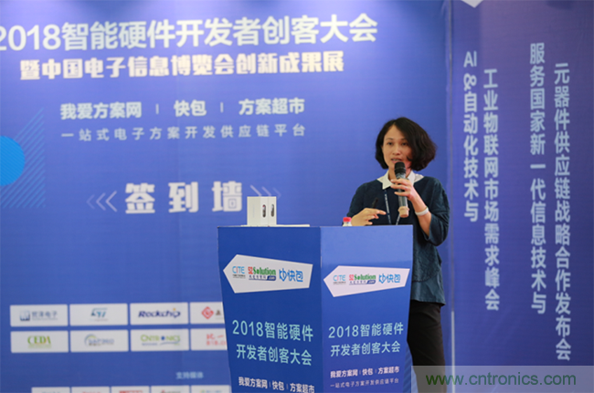 為響應平臺服務商供應鏈需求,落地快包服務商扶持計劃,我愛方案網于4月10日上午,在深圳會展中心隆重舉辦了2018創客大會“ST物聯網開發論壇”,并邀請到ST 市場經理葉潔珍女士作《STM32物聯網應用》主題演講。在活動現場,葉經理分享了ST MCU在物聯網領域的應用和兩款最新產品,以及將于今年8月份上市的產品。