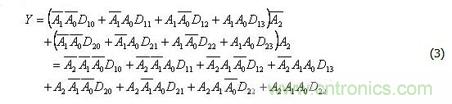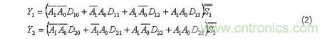 由表2可知,具有兩位地址輸入A0、A1的4選1數(shù)據(jù)選擇器,當(dāng)使能控制端=0時(shí),輸出與輸入之間的邏輯關(guān)系式為
