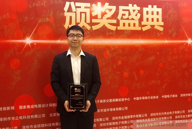 圖1:赫聯(lián)電子亞太區(qū)分公司經(jīng)理Collins Yang代表赫聯(lián)電子領(lǐng)獎(jiǎng)