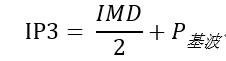 實際上,IP3/TOI是計算所得而非測量所得的結果。一階產(chǎn)物和三階產(chǎn)物之間的功率增加比是3:1,利用以下公式可以計算出IP3。
