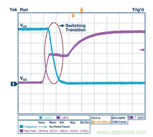 圖2. 無柵極驅(qū)動器的MOSFET導(dǎo)通轉(zhuǎn)換