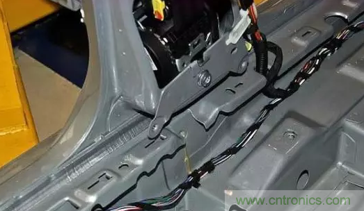 高爾夫的頂棚線束包扎設(shè)計(jì)方案為膠帶黏粘到頂棚上進(jìn)行固定,如下圖所示。