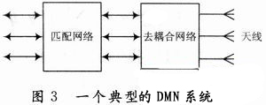 為了提高天線的輻射效率,學者們提出了DMN技術,即在多個天線的輸入端先加耦合器以去掉天線之間的耦合,然后加匹配網絡,如圖3所示。文獻對這種方法進行了詳細論述,并闡述了用S參數分析正交模的方法。下面對一個二端口網絡的天線進行S參數的分析。
