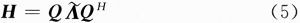 式中:A=diag{λ1,λ2},而Q是幺正的(即QQH=I)。根據厄米特矩陣的性質,兩個正交值λ1和λ2都是實數,并且小于等于1。將式(5)代入式(4)得: